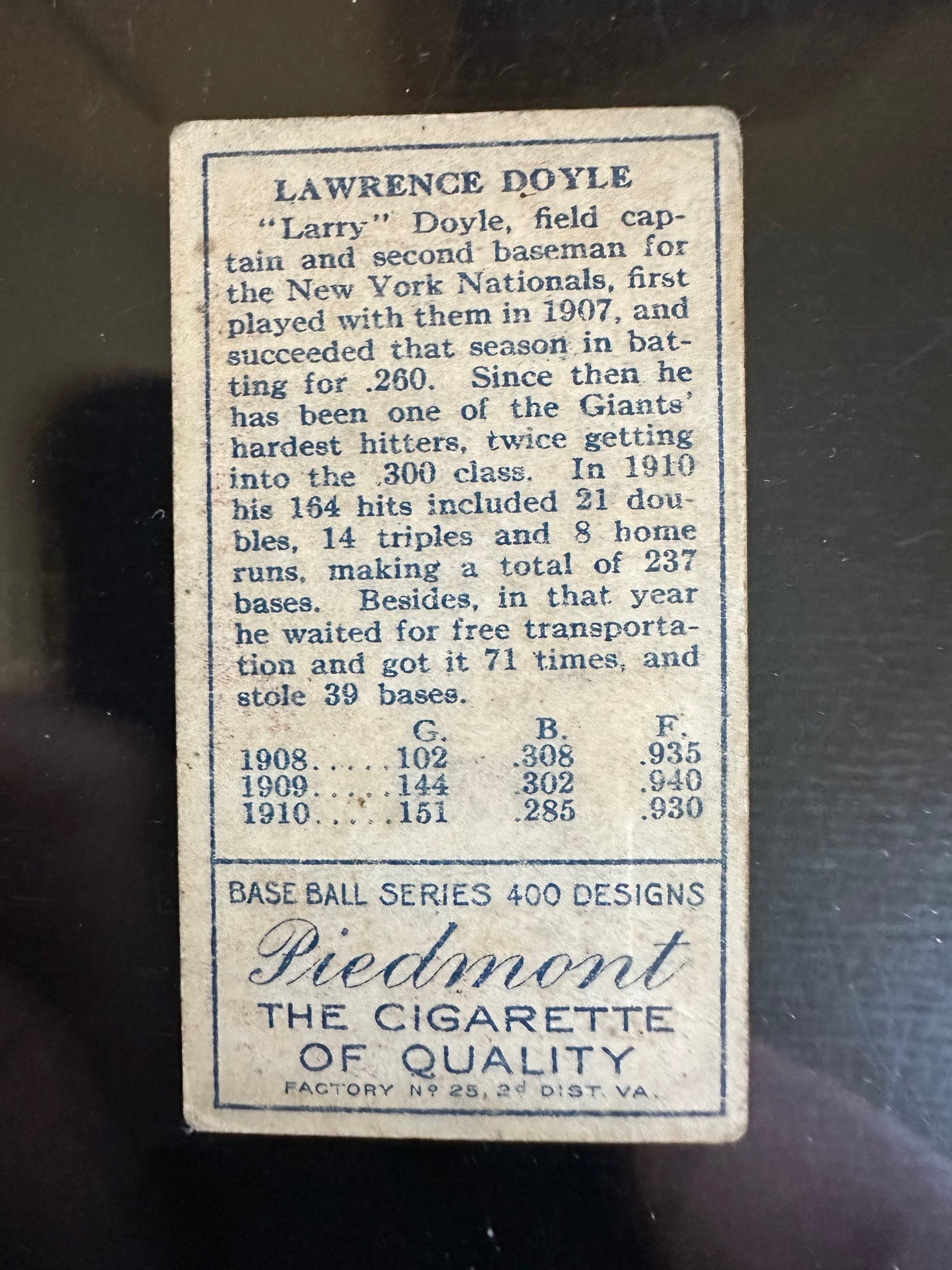 1911 T205 Gold Border Tobacco Baseball Larry Doyle VG Piedmont BACK