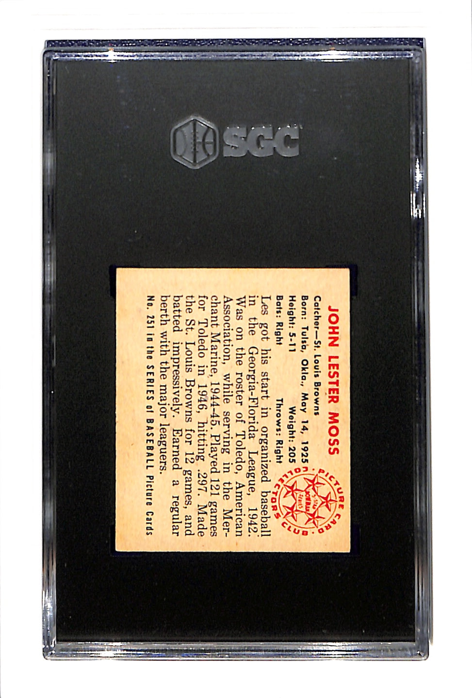 1950 Bowman #251 Less Moss SGC 5 No Copyright -- slight OC a very high grade example!!