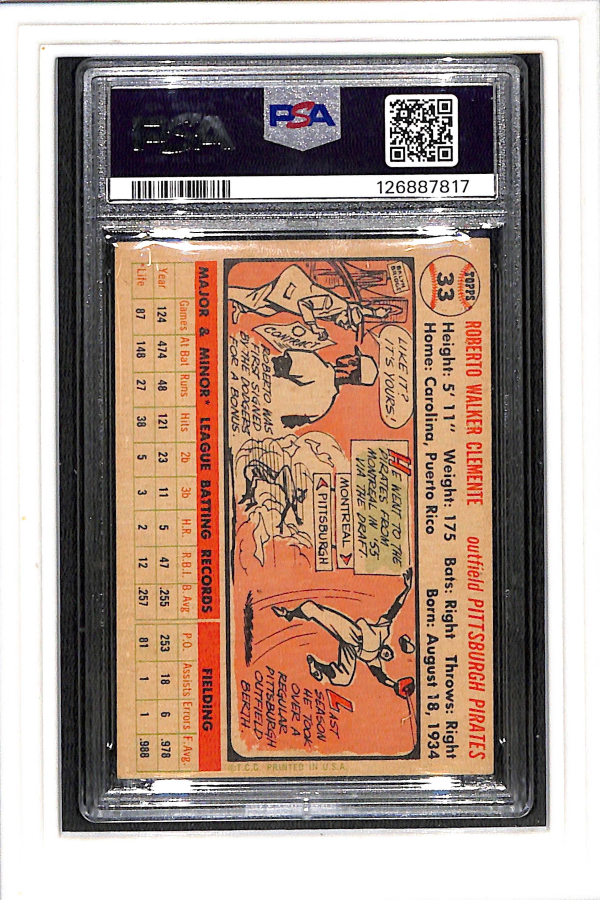 1956 Topps #33 Roberto Clemente - White Back PSA 5 SN 126887817
