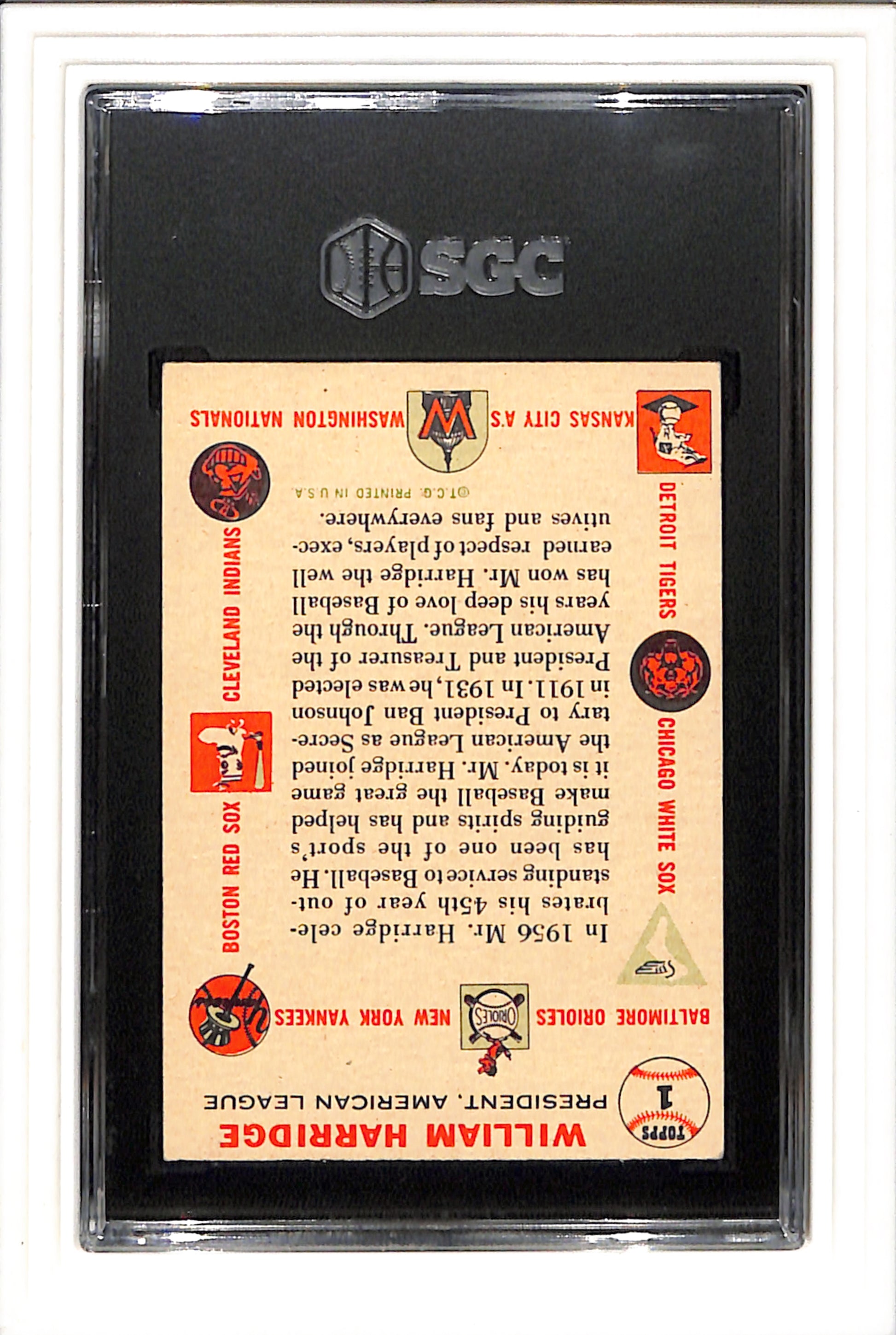 1956 Topps #1 William Harridge White Back SGC 4.5 SN 5219080