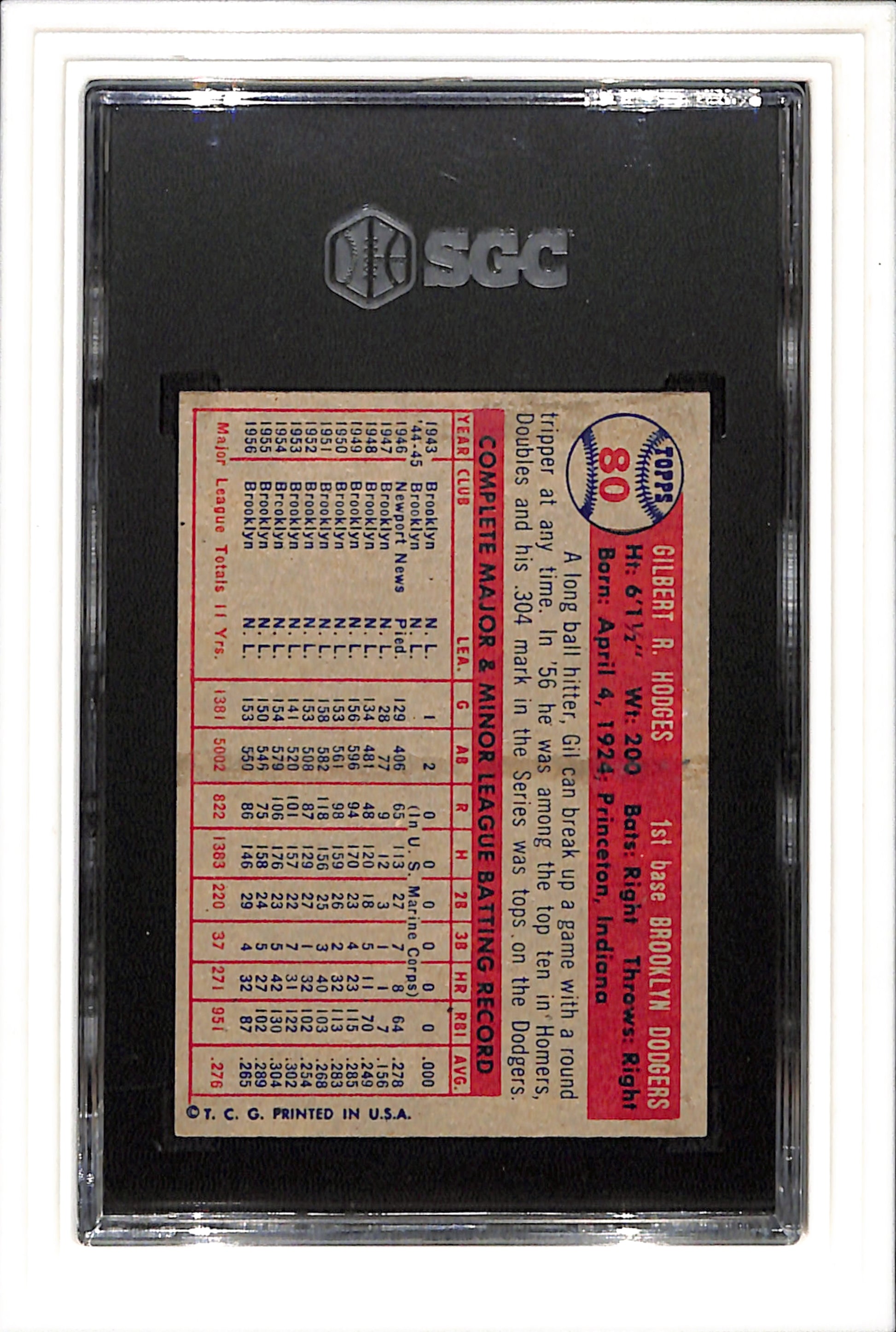 1957 Topps #80 Gil Hodges SGC 6.5 SN 9055804