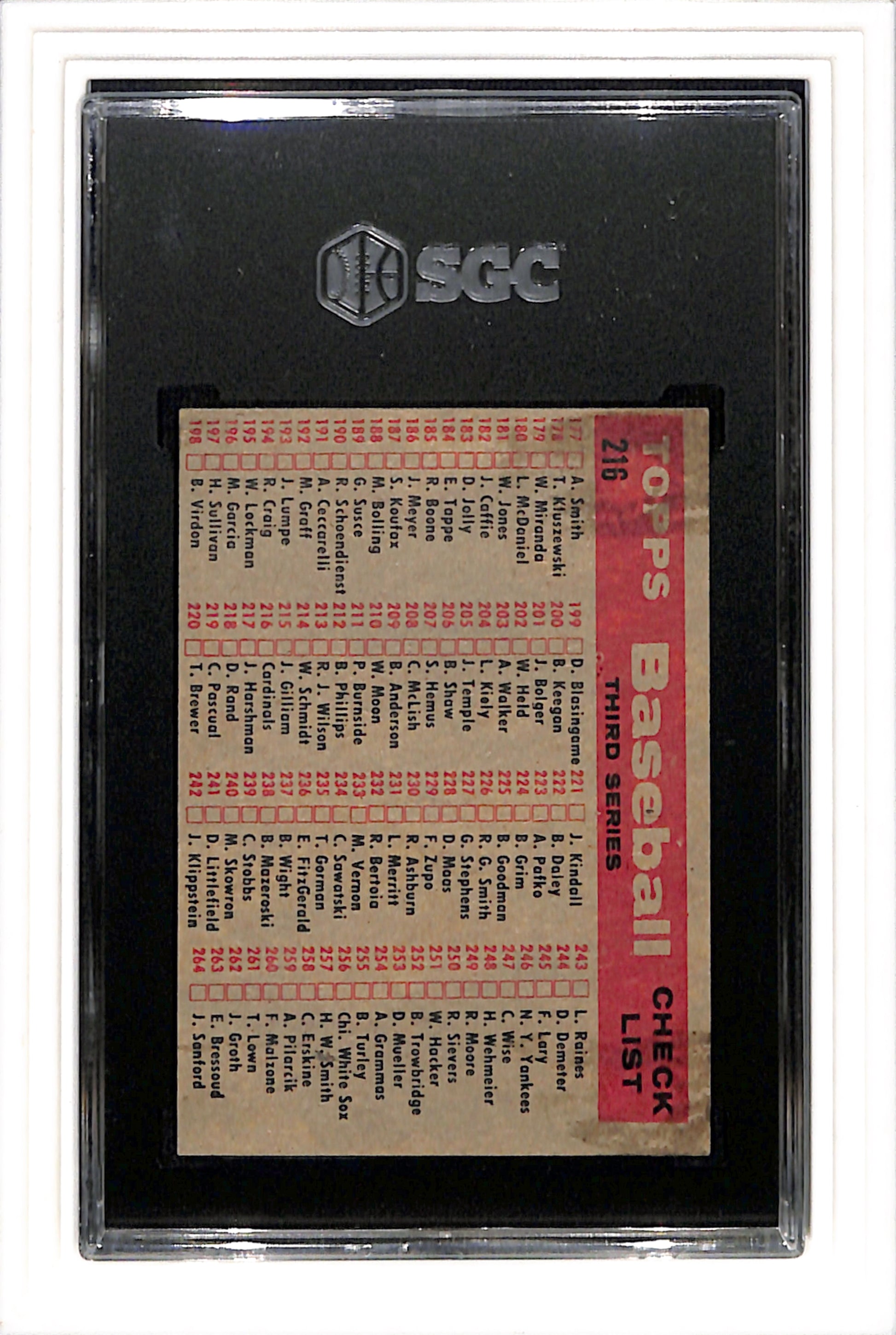 1958 Topps #216 St. Louis Cardinals SGC 4 SN 9374143