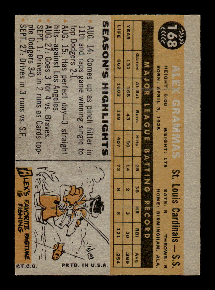 1960 Topps #168 Alex Grammas - St. Louis Cardinals EX