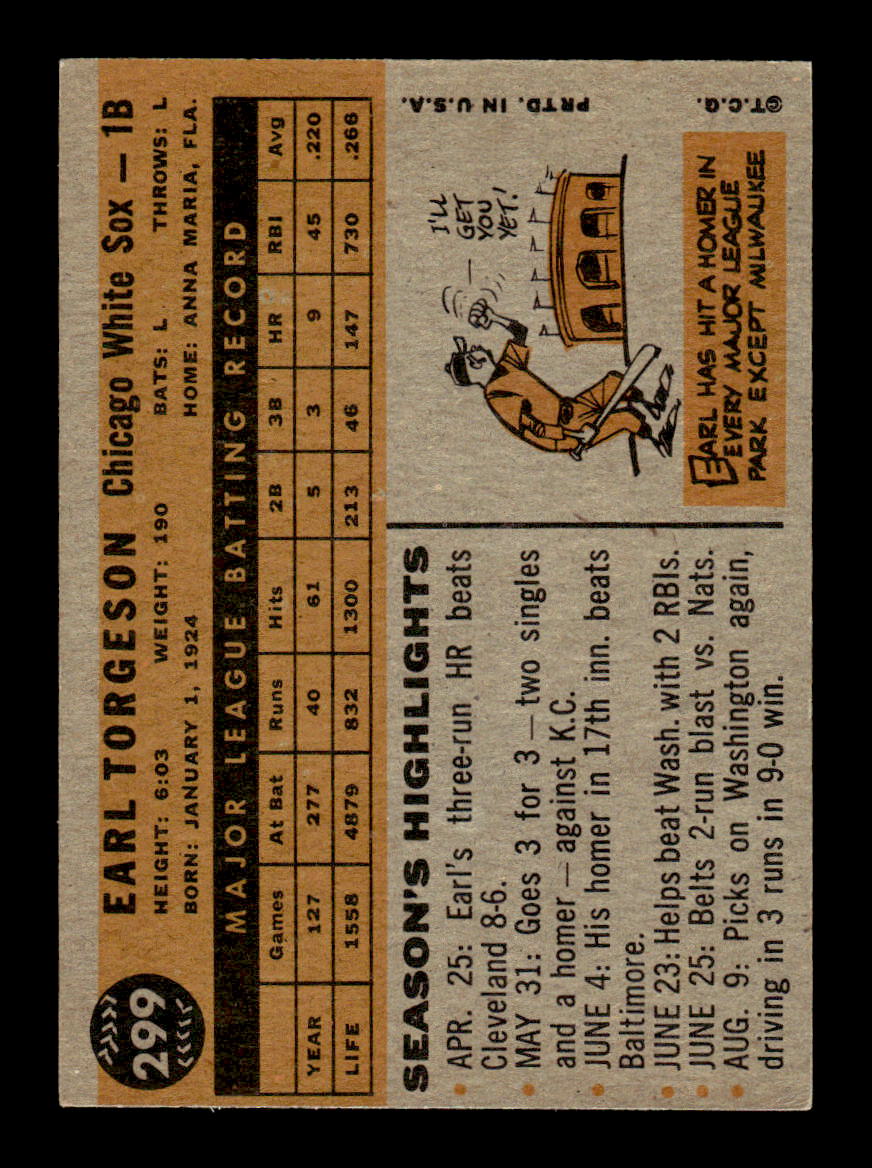 1960 Topps #299 Earl Torgeson - Chicago White Sox EX