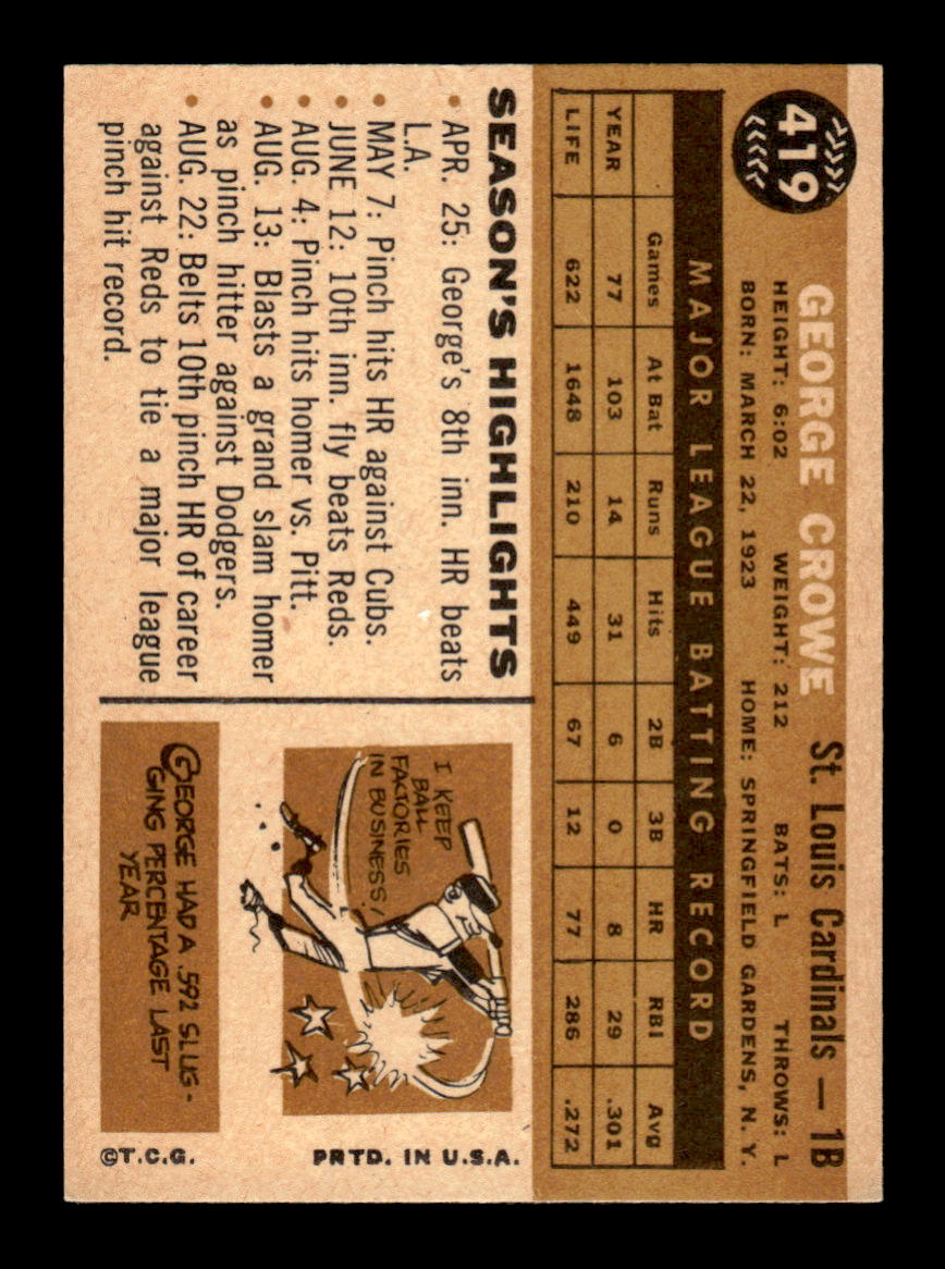 1960 Topps #419 George Crowe - St. Louis Cardinals EXMT