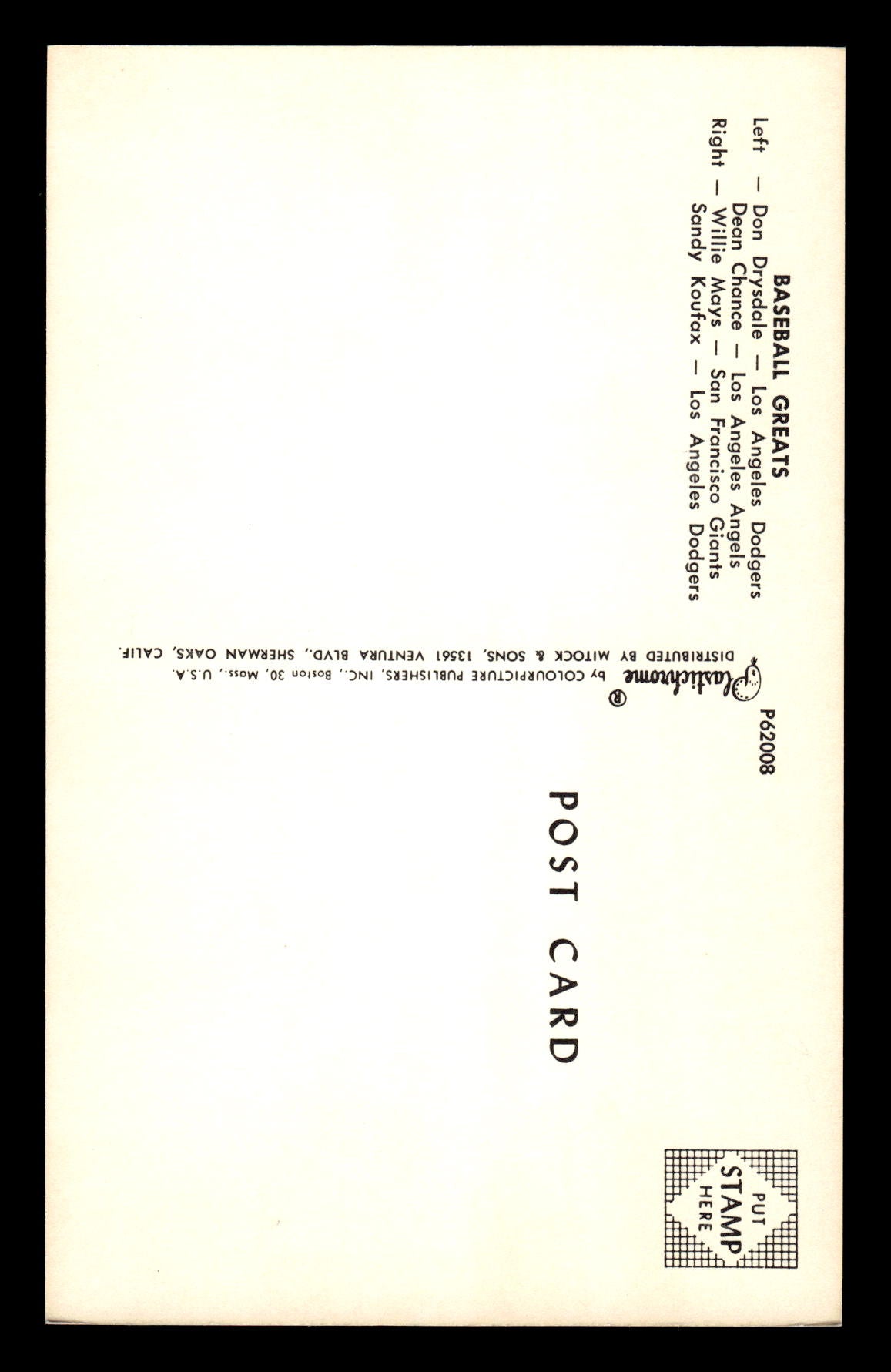 1962 - 65 L.A. DODGERS BASEBALL GREATS POSTCARD WILLIE MAYS SANDY KOUFAX
