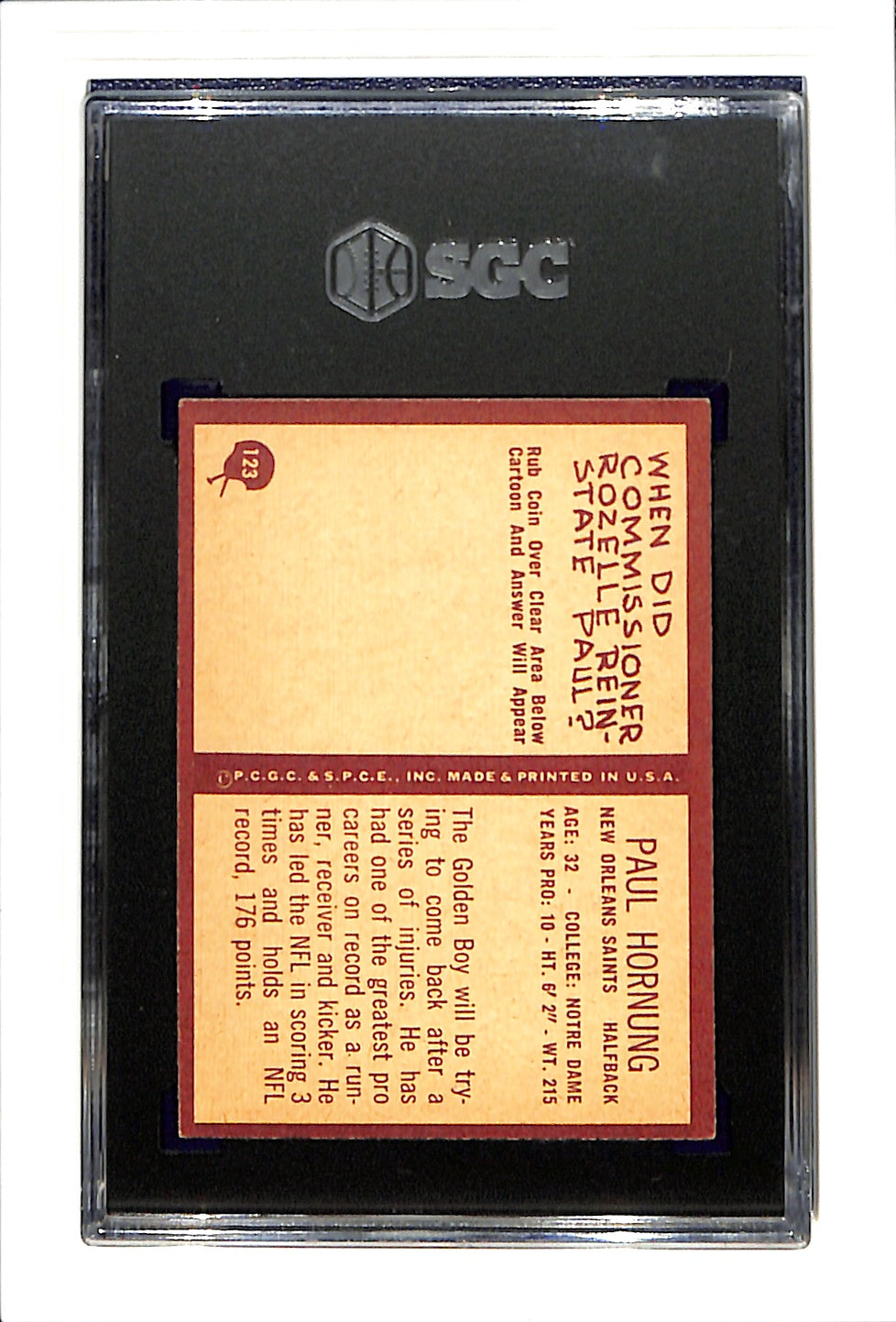 1967 Philadelphia #123 Paul Hornung SGC 6 SN 6034739