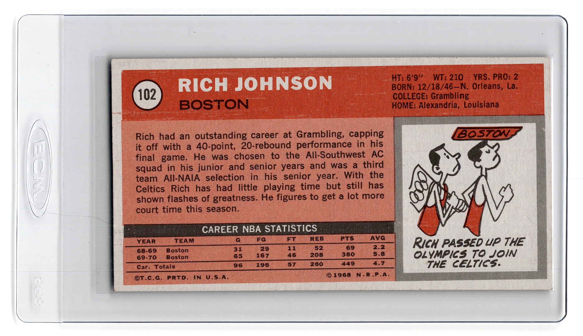 1970-71 Topps #102 Rich Johnson - Boston Celtics exmt Grades are my Opinion and I try to be conservative - Most of the Tall Boys are SHARP!!! Almost NMT/MT