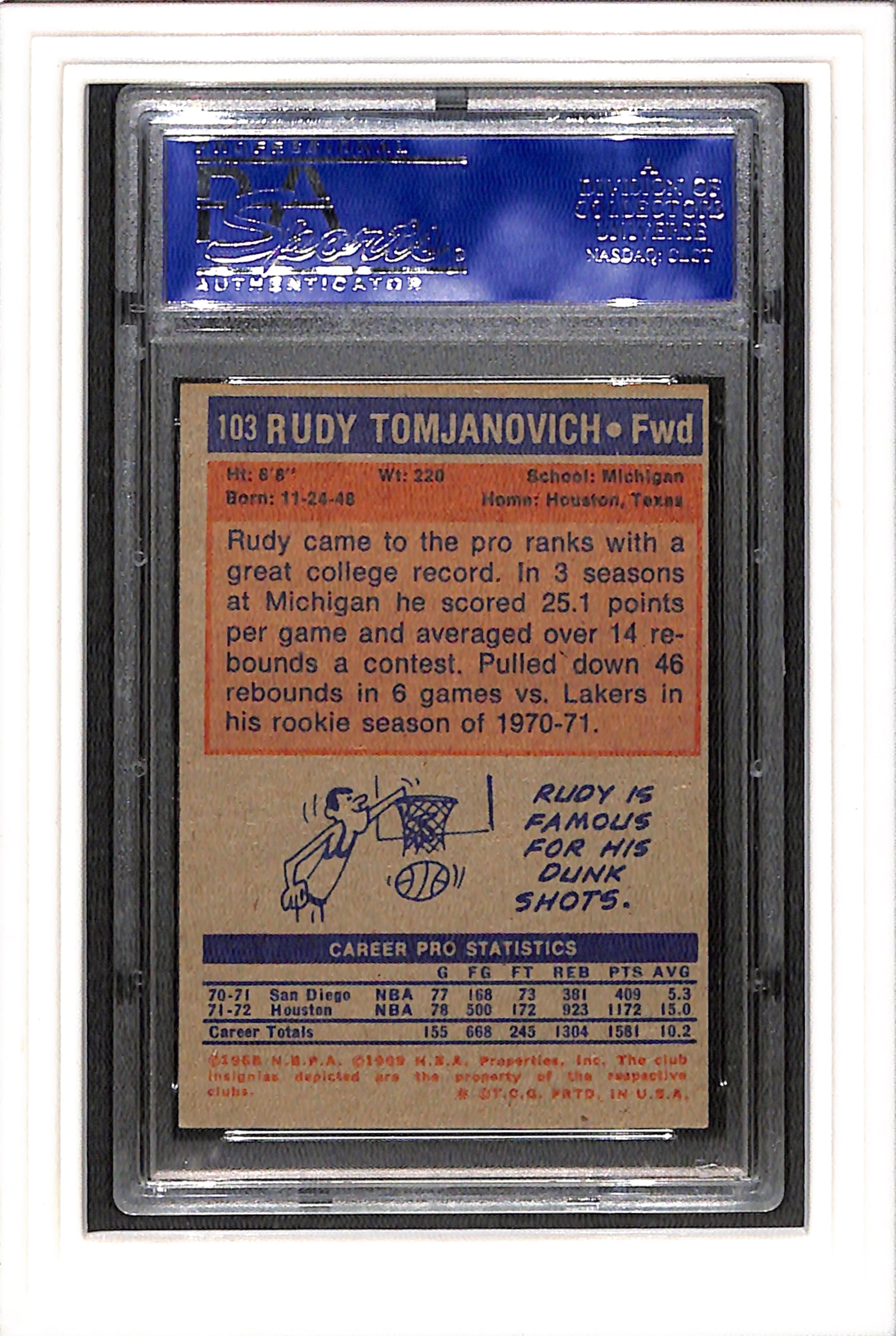1972-73 Topps #103 Rudy Tomjanovich PSA 7 SN 12250007