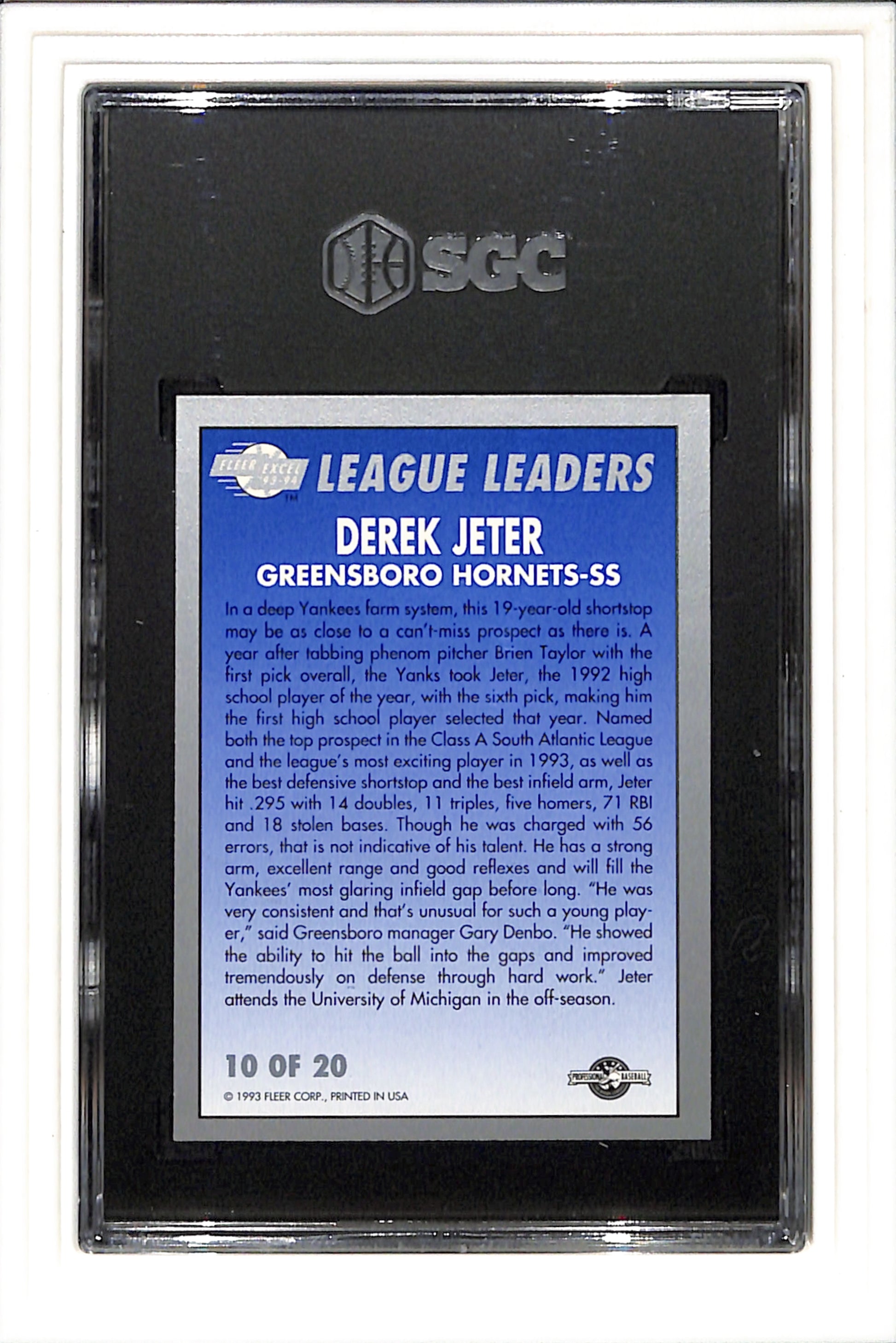 1993 FLEER EXCEL LEAGUE LEADERS #10 DEREK JETER SGC 8