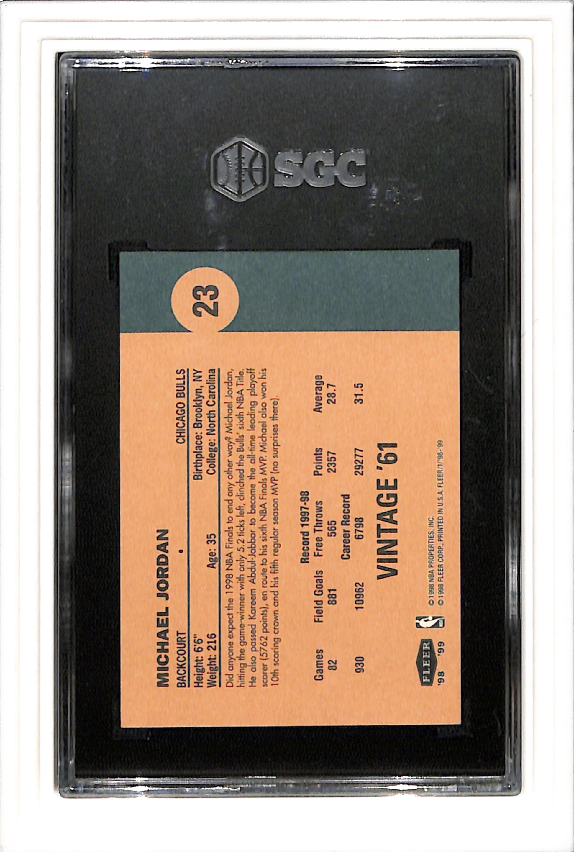 1998-99 Fleer Tradition Vintage '61 #23 Michael Jordan Bulls SGC 9