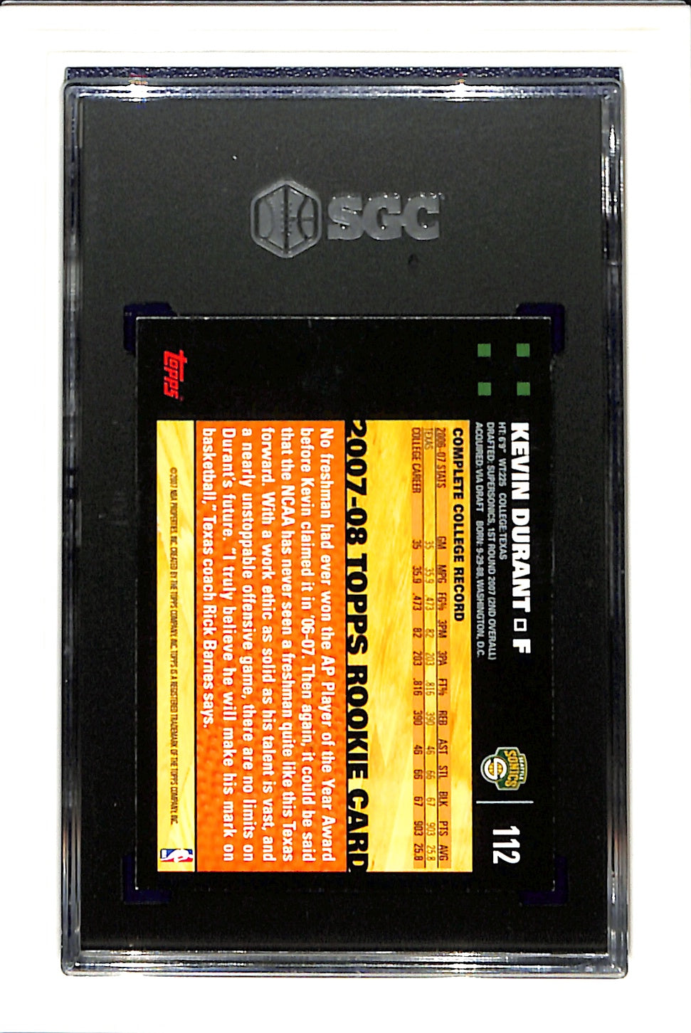 2007-08 Topps #112 Kevin Durant SGC 8