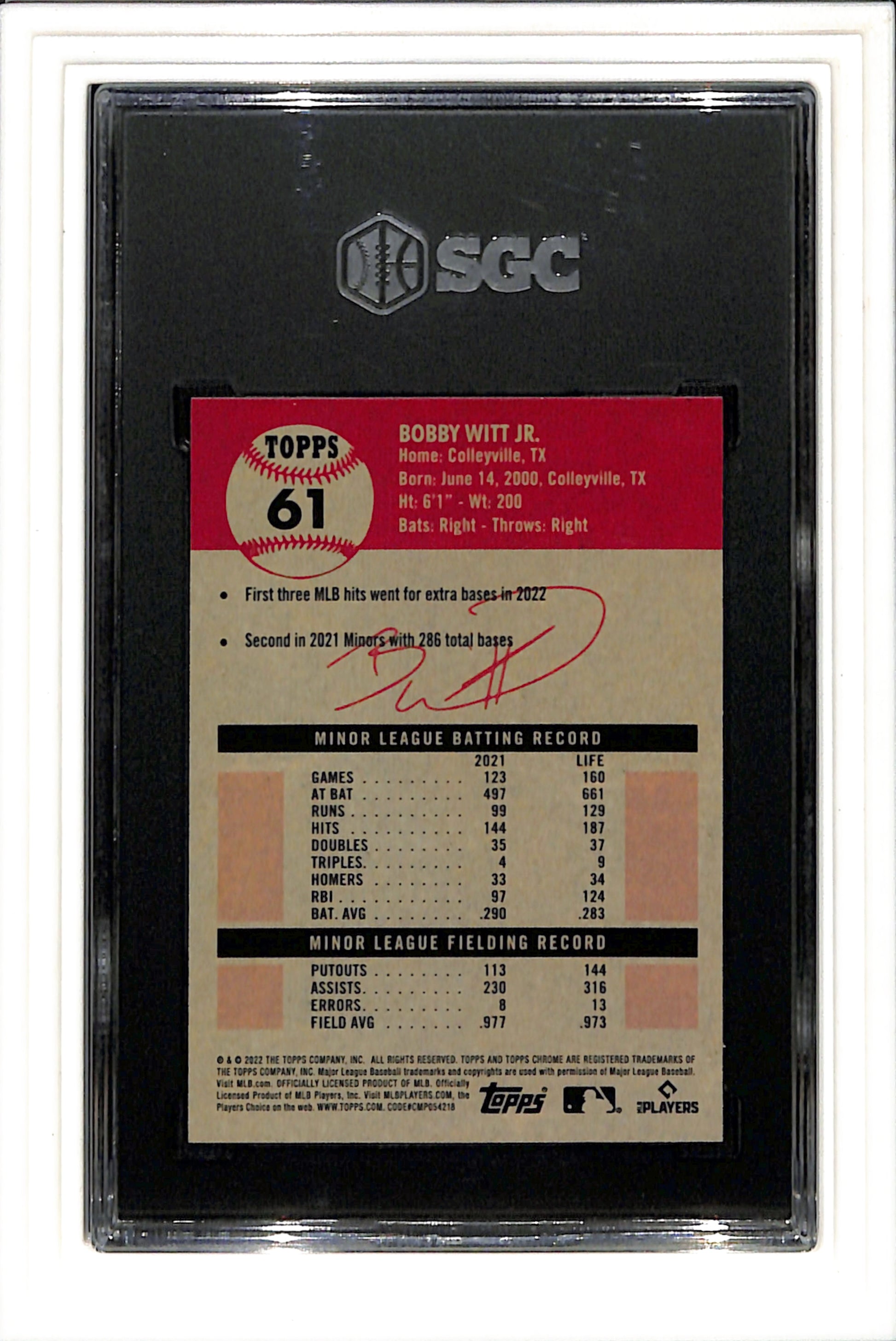 2022 Topps Chrome Platinum Anniversary - #61 Bobby Witt Jr. (RC) SGC 9